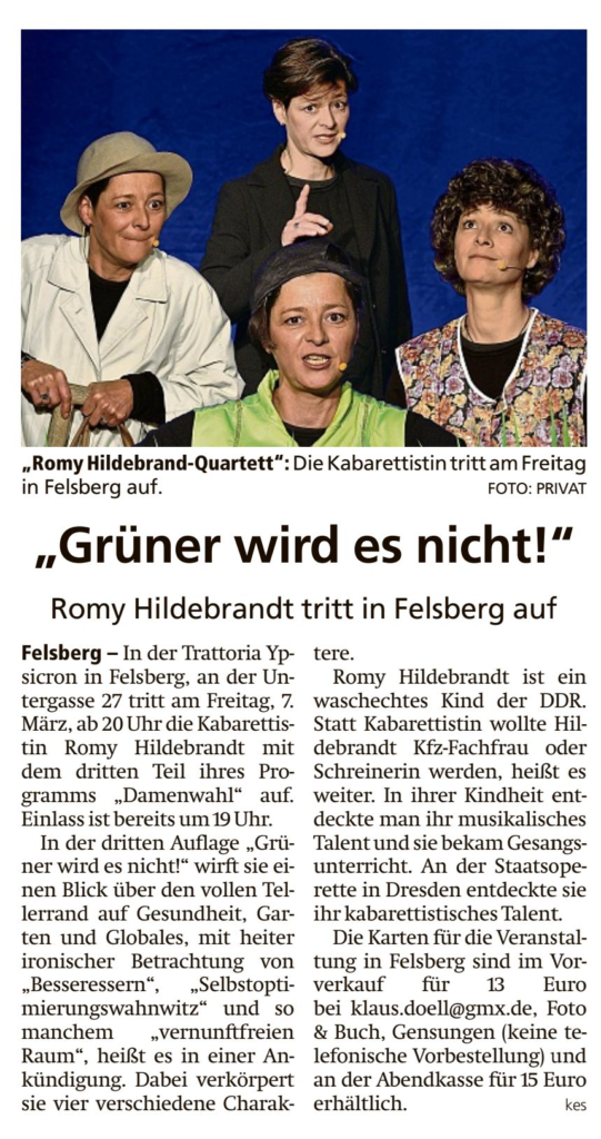 Mehr über Romy Hildebrandt Beitragsnavigation Lothar Frey Hausband live in Trattoria YpsicronComedy Kabarett mit Rena Schwarz im Yypsicron