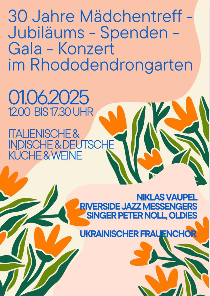 Freuen Sie sich auf ein abwechslungsreiches Programm mit Musik, kulturellen Beiträgen und kurzen Einblicken in die wertvolle Arbeit des Mädchentreffs. Vor Ort stellen wir vor, wie der Mädchentreff Mädchen und junge Frauen stärkt, sie begleitet und ihnen einen sicheren Raum für Austausch, Freizeit und Unterstützung bietet.